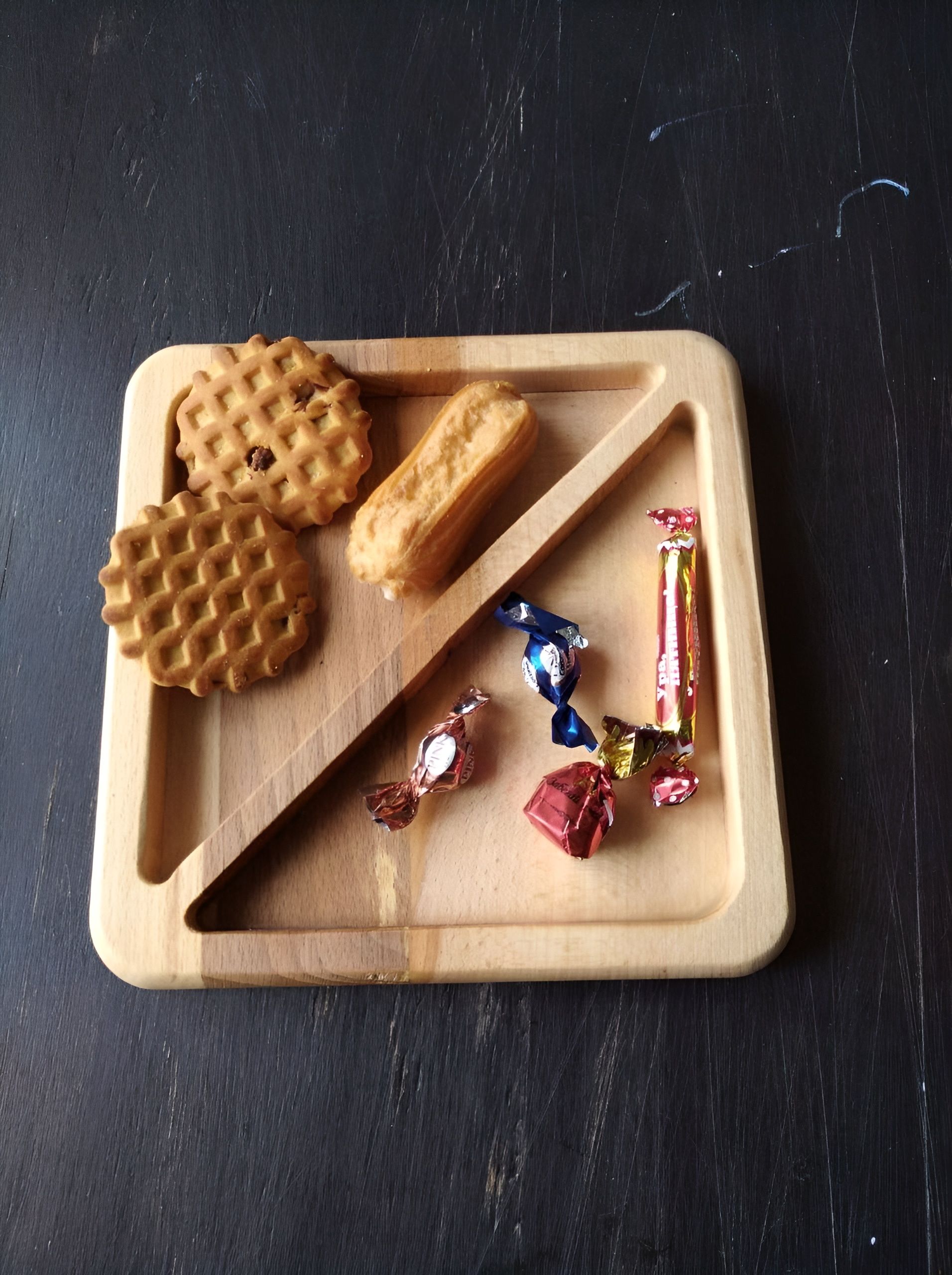 - Две отдельные секции удобны для хранения сладостей, орехов или других нарезок
